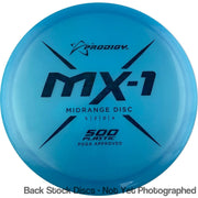 Le Prodigy MX-1 est un disque de milieu de gamme très overstable. Il est conçu pour avoir une finition prévisible quel que soit l’angle de déclenchement. Que vous le lanciez du revers ou avec une arme de poing, le MX-1 peut gérer la puissance et le vent sans problème. Dans votre main, il ressemble à un disque perlé mais n'a pas de perle et son diamètre est légèrement plus petit que celui des médiums traditionnels.