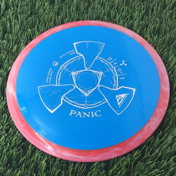 The Panic is thoroughly overstable, with plenty of beef to handle headwinds and torqued-up sidearms. Its overstability holds the Panic on any kind of hyzer line and allows steep anyhyzer flex shots. For high-power throwers the Panic will be a useful utility driver, while newer and average throwers will get an extremely overstable flight. The Panic is best described as a seasoned MVP Nitro.