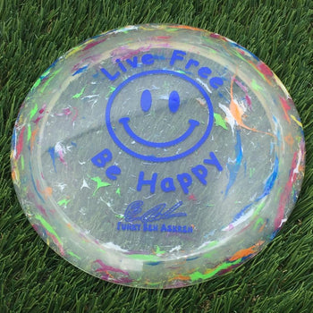 Sold out - Discraft Elite Z Jawbreaker Thrasher with Live Free - Be Happy - Funky Ben Askren Fundraiser Stamp - 173.6g - Multicolor mostly Blue