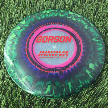 Mold: The Innova Gorgon Distance Driver in Champion I-Dye Plastic -- Speed: 10 | Glide: 6 | Turn: -2 | Fade: 1