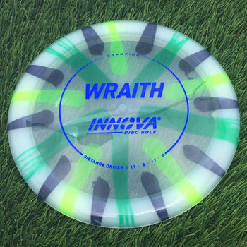 - Innova Champion I-Dye Wraith with Burst Logo Stock Stamp - 168.5g - Green, yellow and black lines Dyed