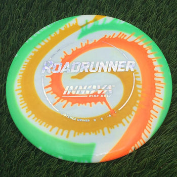 Sold out - Innova Star I-Dye Roadrunner with Burst Logo Stock Stamp - 168.1g - Green, and two tone orange swirly Dyed