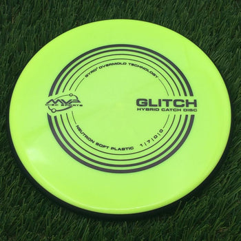 The next great experiment from MVP R&D Lab, the Glitch is a hybrid catch disc designed to blur the lines between disc golf and a catch disc. The Glitch has the diameter of a putter and is PDGA approved as well, making it truly the best of both worlds. With flight numbers of 1 | 7 | 0 | 0, the Glitch is the first MVP disc with 7 glide — just a flick of the wrist is all that stands between you and a game of catch on the beach or an approach to the green! Neutron Soft plastic makes the Glitch easily catchable when throwing around with a friend, but it also makes the Glitch an awesome approach or scramble disc because of its tendency to sit where it lands.