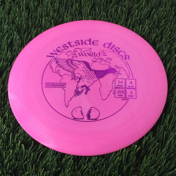 Mold: The Westside World Distance Driver in Tournament Plastic -- Speed: 14 | Glide: 4 | Turn: -.5 | Fade: 3