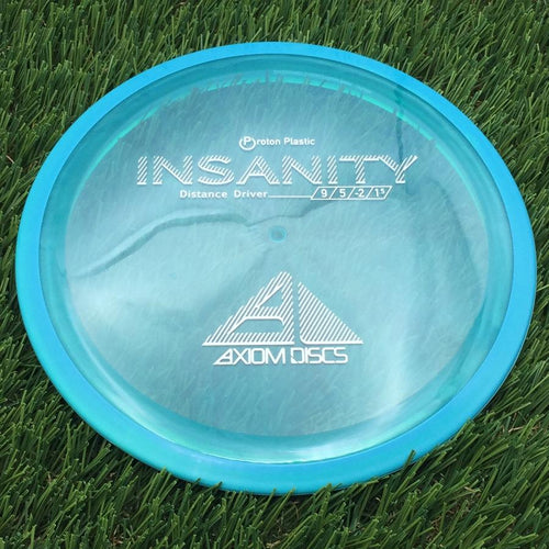 Mold: The Axiom Insanity Distance Driver in Proton Plastic -- Speed: 9.0 | Glide: 5.0 | Turn: -2.0 | Fade: 1.5