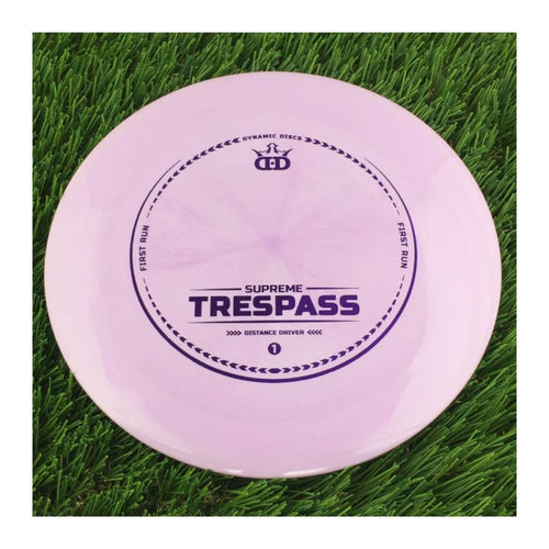 See All: Supreme Trespasss with First Run stamp.Mold: The Dynamic Discs Trespass Distance Driver in Supreme Plastic -- Speed: 12 | Glide: 5 | Turn: -.5 | Fade: 3