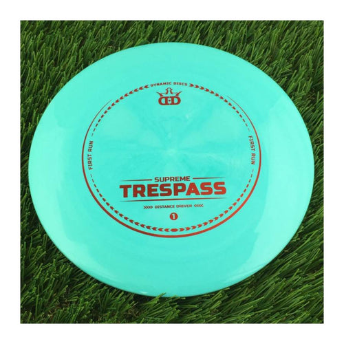See All: Supreme Trespasss with First Run stamp.Mold: The Dynamic Discs Trespass Distance Driver in Supreme Plastic -- Speed: 12 | Glide: 5 | Turn: -.5 | Fade: 3