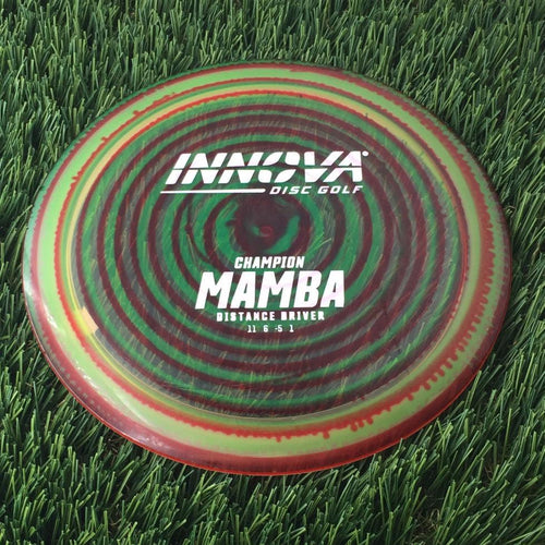 Mold: The Innova Mamba Distance Driver in Champion I-Dye Plastic -- Speed: 11 | Glide: 6 | Turn: -5 | Fade: 1
