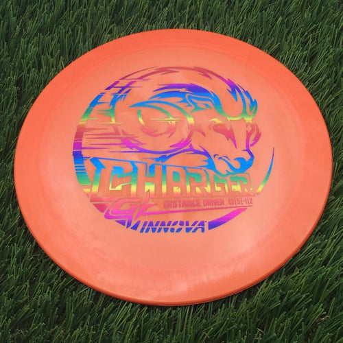 See All: Gstar Chargers with Burst Logo Stock stamp.Mold: The Innova Charger Distance Driver in Gstar Plastic -- Speed: 13.0 | Glide: 5.0 | Turn: -1.0 | Fade: 2.0