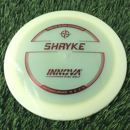 Mold: The Innova Champion Shryke Distance Driver in Proto Glow Champion Plastic -- Speed: 13 | Glide: 6 | Turn: -1 | Fade: 2