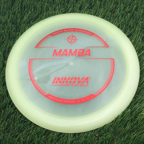 Mold: The Innova Mamba Distance Driver in Proto Glow Champion Plastic -- Speed: 11.0 | Glide: 6.0 | Turn: -5.0 | Fade: 1.0