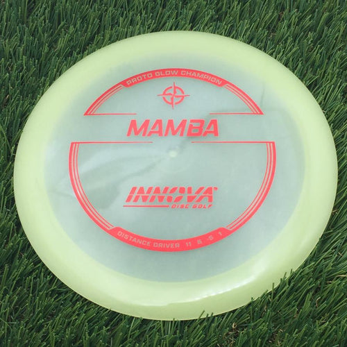 Mold: The Innova Mamba Distance Driver in Proto Glow Champion Plastic -- Speed: 11.0 | Glide: 6.0 | Turn: -5.0 | Fade: 1.0