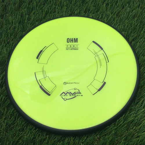 Laser straight drives and confident putts are the best ways to describe the brand new Ohm from MVP. Debuting in Neutron plastic, the Ohm is inspired by the Streamline fan-favorite Pilot, but with enhanced GYRO� effect. The results are incredible! The tried and true shape provides both a reliable grip and loads of glide for some truly impressive drives and putts. The Ohm is sure to find a place in every disc golfer�s bag.