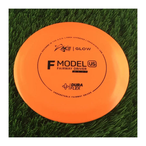 The F Model US puts a nice variety of shot shapes into a player’s bag with its unique flight tendencies. The US designation for understable is apparent out of the hand thanks to its high speed turn which makes the disc drift right for a right handed backhand shot. What makes the flight unique is its noticable finish at the end. This gives players with lower arm speeds a nice disc to throw longer “S” shots with and those with more power a nice understable option that can handle some torque. F Model discs are a great introduction into "drivers". They're made for controlled, accurate shots at a long distance and have a smaller rim for a comfortable grip.