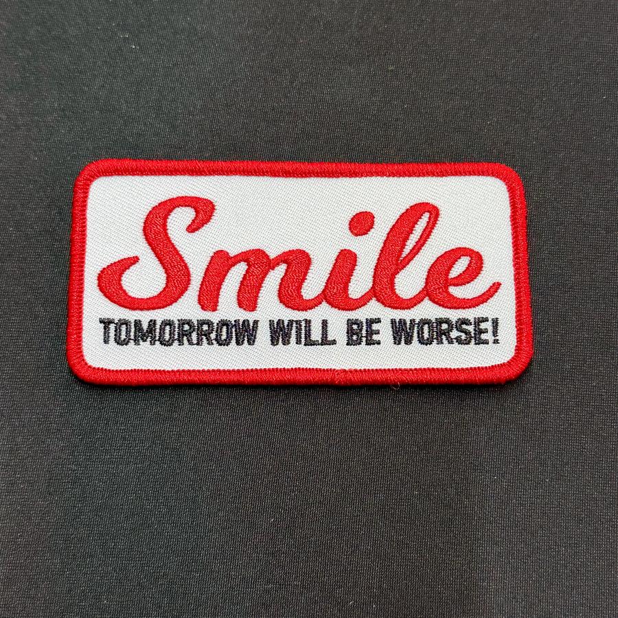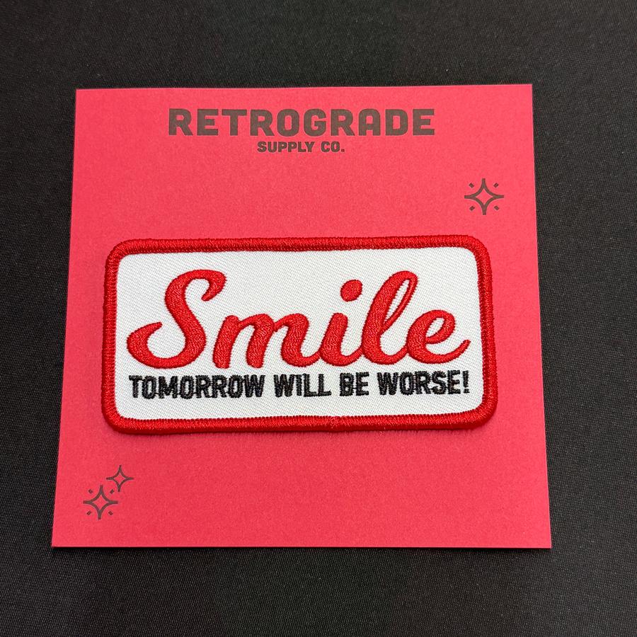Retrograde Supply Co 'Smile, Tomorrow Will Be Worse' Iron-On Patch | Brutally Optimistic