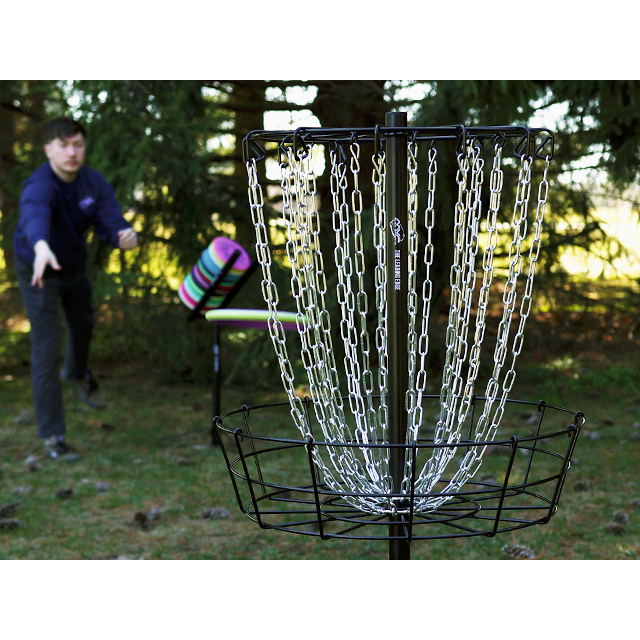 The Black Hole® Practice has been designed for high quality, light weight, and affordability. With its compact, easily transportable disassembled unit, you can assemble the Black Hole® Practice anywhere you like to practice your disc golf game. Built to standard PDGA height and size regulations with threaded tension connections for a sturdy assembly without any distracting wobble or play, the Black Hole Practice is ready for practice anytime.