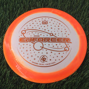 You no longer need to make a choice. You don't have to sacrifice distance in order to have stability. You don't have to fear flipping over when you need a big throw. The Enforcer mixes these two needs beautifully. It will fly great into a wind. It can be turned over for a very predictable S-flight. It is a wonderful disc for a spike shot. The versatility and predictability of the Enforcer has proven itself and is a staple in the bags of many world class professionals.