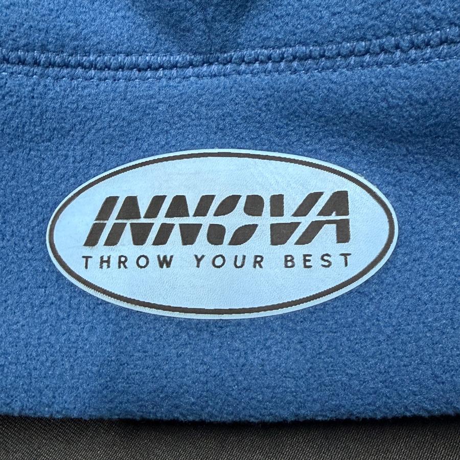 Each beanie features Innova’s 2026 Throw Your Best slogan on a thin rubber patch that sits smoothly against the fabric. The beanie uses a four panel top construction with a three inch band circling the bottom edge for a secure fit. The polyester fleece is soft against the skin and warms quickly while remaining breathable. Fit is comfortable for medium to large heads, with the blue colorway running slightly larger for those who need extra room. The beanie stays out of the way when layering clothing and feels natural to wear throughout a full round.