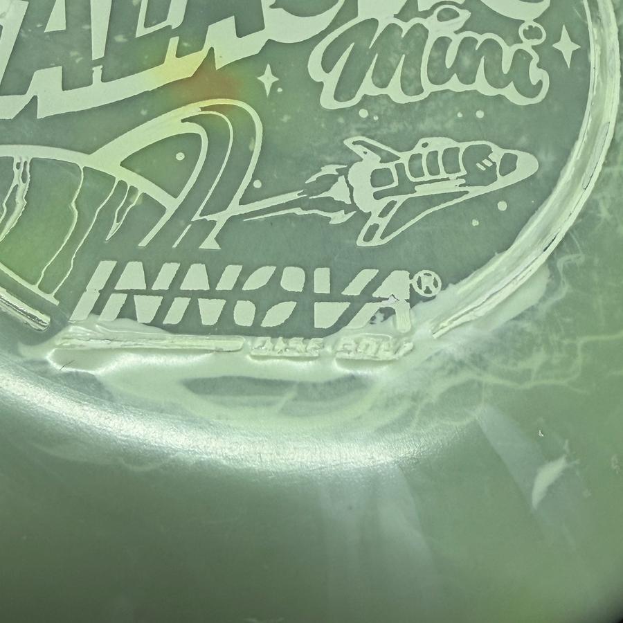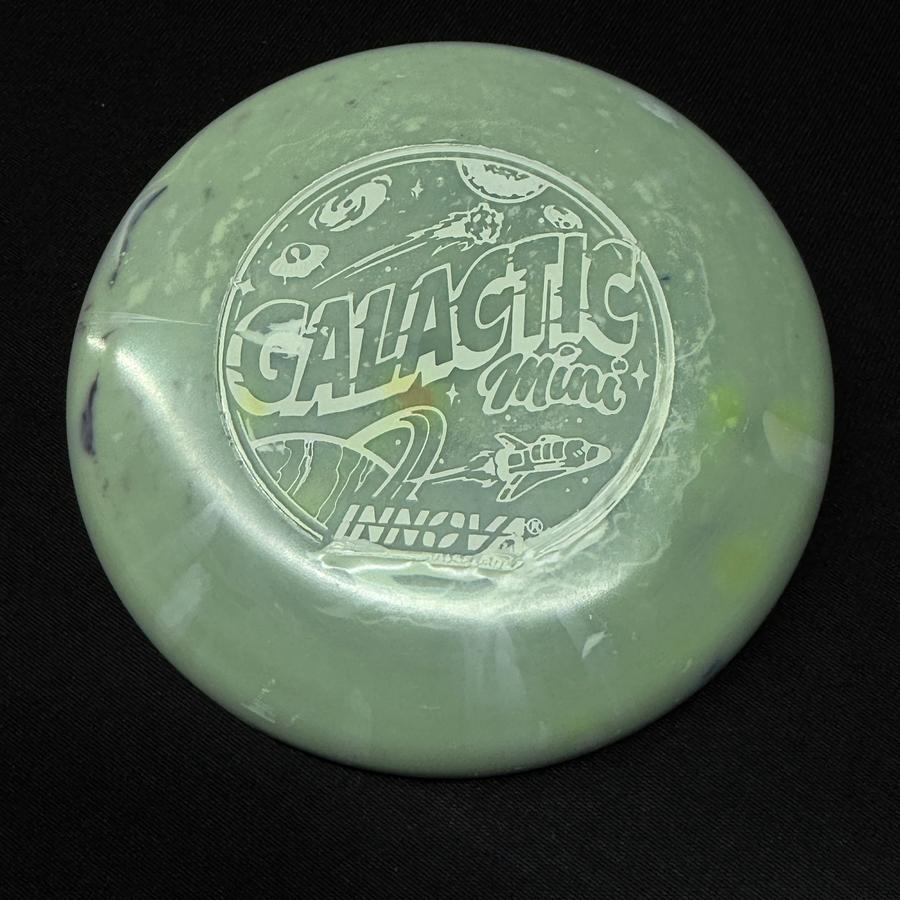 Made from Innova’s Galactic plastic, each mini features a solid plastic base material infused with colorful streaks and confetti like patterns mixed directly in. No two markers are exactly alike, giving every mini a unique look with swirling color combinations that stand out in your bag or on the course.