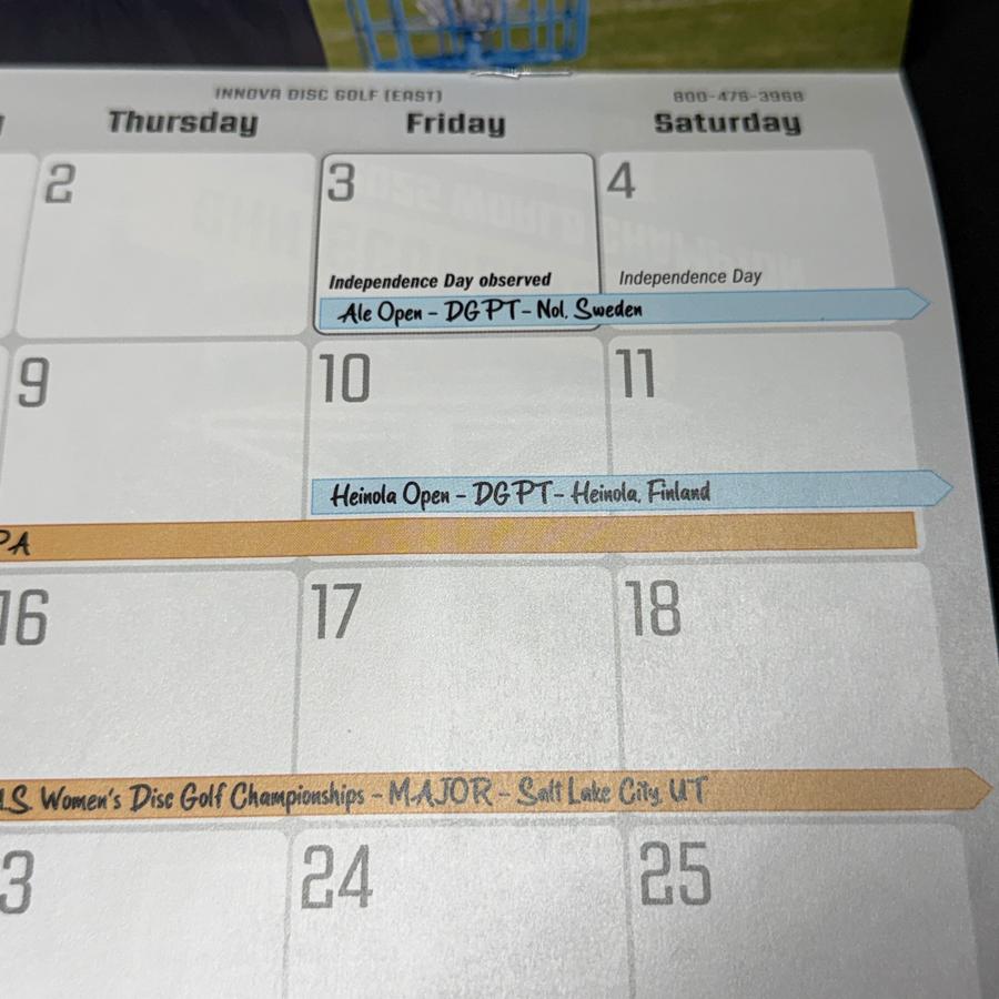 - PDGA majors marked on each month