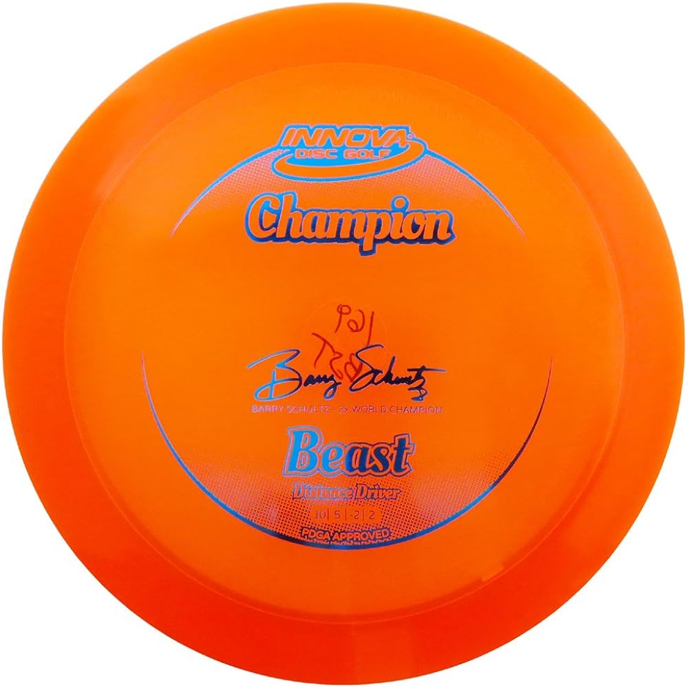 The Beast was issued in the era of the wide rimmed driver. It was an instant classic when it was released, giving players more distance using less power. The Beast's high glide, high speed and high speed turn all combine to give big distance. It is suitable for beginners and pros alike. The Champion Beast is endorsed by two-time World Champion Barry Schultz.