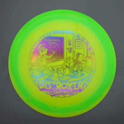 The Destroyer is a very fast stable long distance driver. This disc is much like a faster Wraith, but with a little more high and low speed stability. Great disc for sidearm throwers and those with lots of power. Can handle headwinds and throws with off axis torque. Not suggested for beginning players.