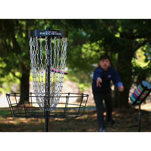 The Black Hole® Precision is built for those who are looking to increase their putting accuracy at home or on the go. With the 13” band diameter, the utmost accuracy is required to clang the chains with the Black Hole® Precision. Able to be assembled in under 1 minute whenever and wherever you desire, the unique engineering and design of the Black Hole Precision make it an ideal companion to refine your putting accuracy.