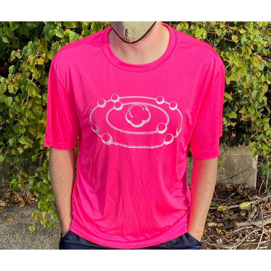 Bright fuchsia MVP Ion Cloud Dri Fit T-shirt with a white atom-like graphic centered on the chest.