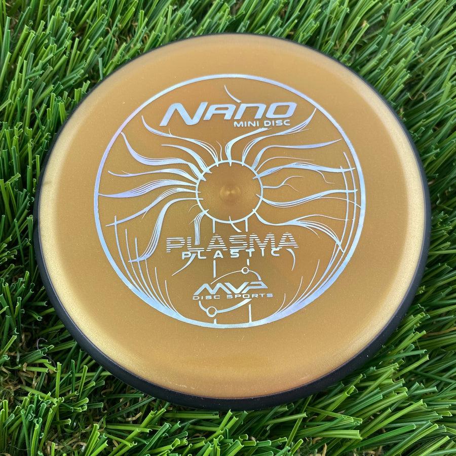 Orange MVP Nano Plasma Mini Marker disc golf marker with white "NANO" and "PLASMA" branding.
