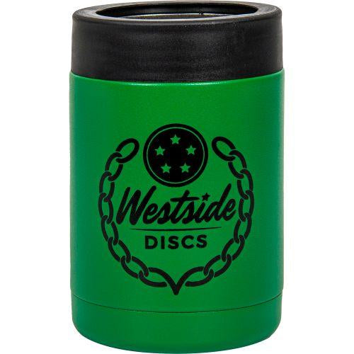 Westside green stainless steel can keeper with a black top ring and black Westside Discs logo.