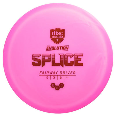 A stack of Discmania Active Base Level Genius disc golf discs in blue, hot pink, and light beige.