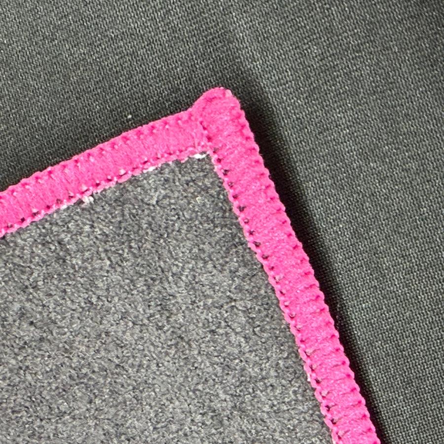 Black Discraft Paige Pierce microfiber towel with a large vertical hot pink Discraft logo and pink trim.