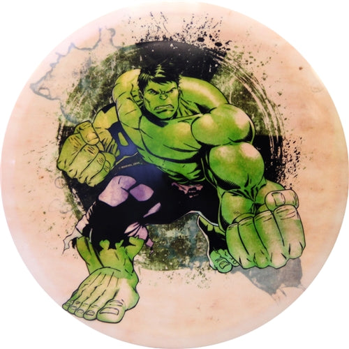 Dynamic Discs Marvel Dyemax Mini Judge marker disc features an enraged green Hulk against a dark splatter background.