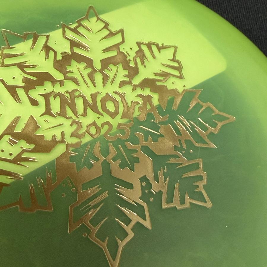 The Innova Champion Luster Mini Marker Holiday 2025 edition is a collectible disc golf mini that blends seasonal style with premium materials. Made in Champion Luster plastic, this mini has a slightly translucent look with a subtle shimmer that catches the light and gives it a polished finish.