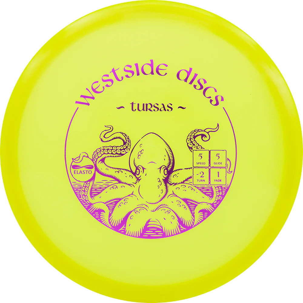 Le Westside Tursas est notre disque de milieu de gamme le plus contrôlable. Conçu pour le joueur de tous les jours, le Tursas rendra le jeu de disc golf plus amusant. Il devrait vous permettre de réaliser un anhyzer médium pendant que vous apprenez à jouer. Idéal pour les femmes et les enfants, car il a une adhérence moins profonde que la plupart des gammes moyennes disponibles sur le marché. Pour les joueurs professionnels, c'est un excellent médium anhyzer. Pour les bras à vitesse inférieure, il glissera droit aussi longtemps qu’il sera en l’air. Le Tursas est disponible en plastique VIP, VIP Air et de tournoi. Westside Tursas est un disque approuvé par PDGA.