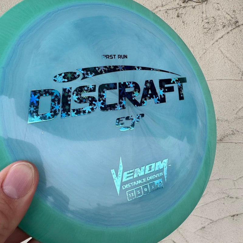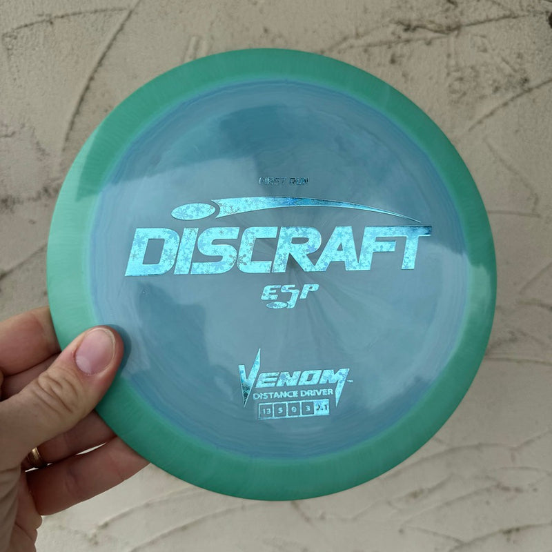 See All: ESP Venoms with First Run stamp.Mold: The Discraft Venom Distance Driver -- Speed: 13 | Glide: 5 | Turn: 0 | Fade: 3
