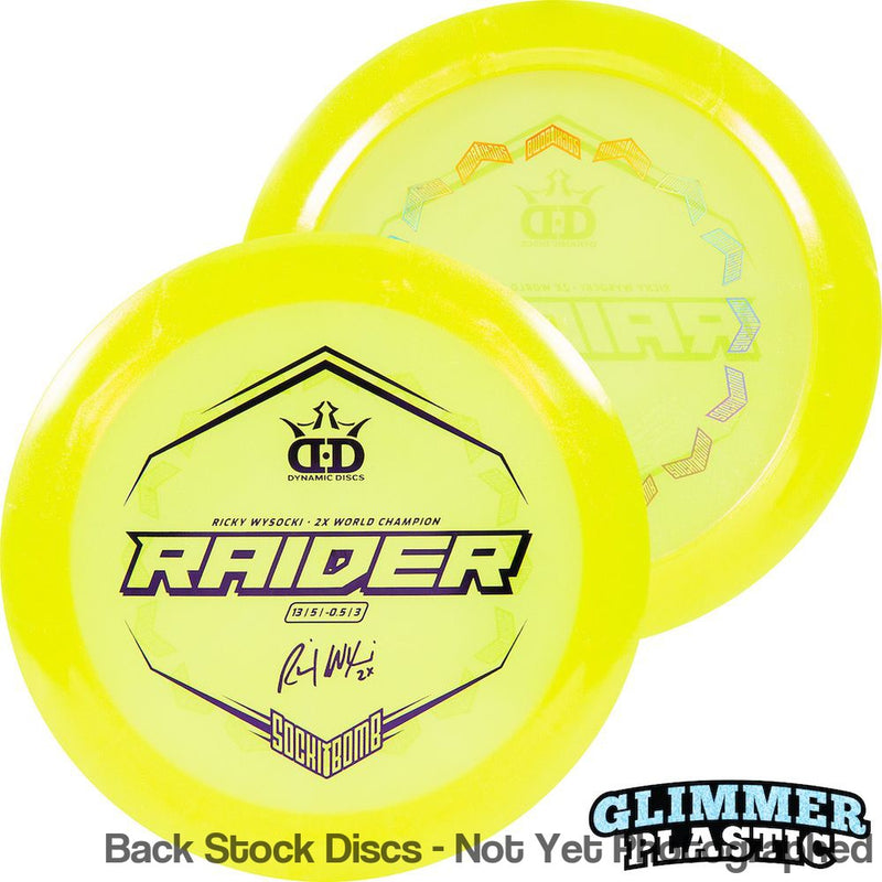 Dynamic Discs Lucid Ice Glimmer Raider Distance Driver with RickyWysocki - 2X World Champion & Sockibomb Ring Bottom Stamp [Back Stock Inventory - Disc and Stamp Color WILL VARY]