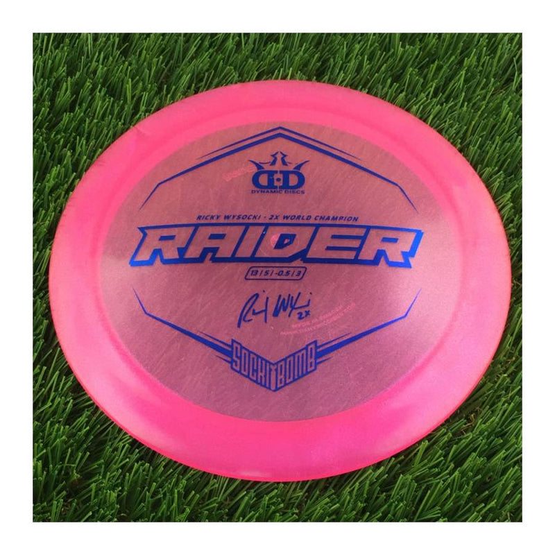 Dynamic Discs Lucid Ice Glimmer Raider with Ricky Wysocki - 2X World Champion - SockiBomb Stamp - 175g - Translucent Pink