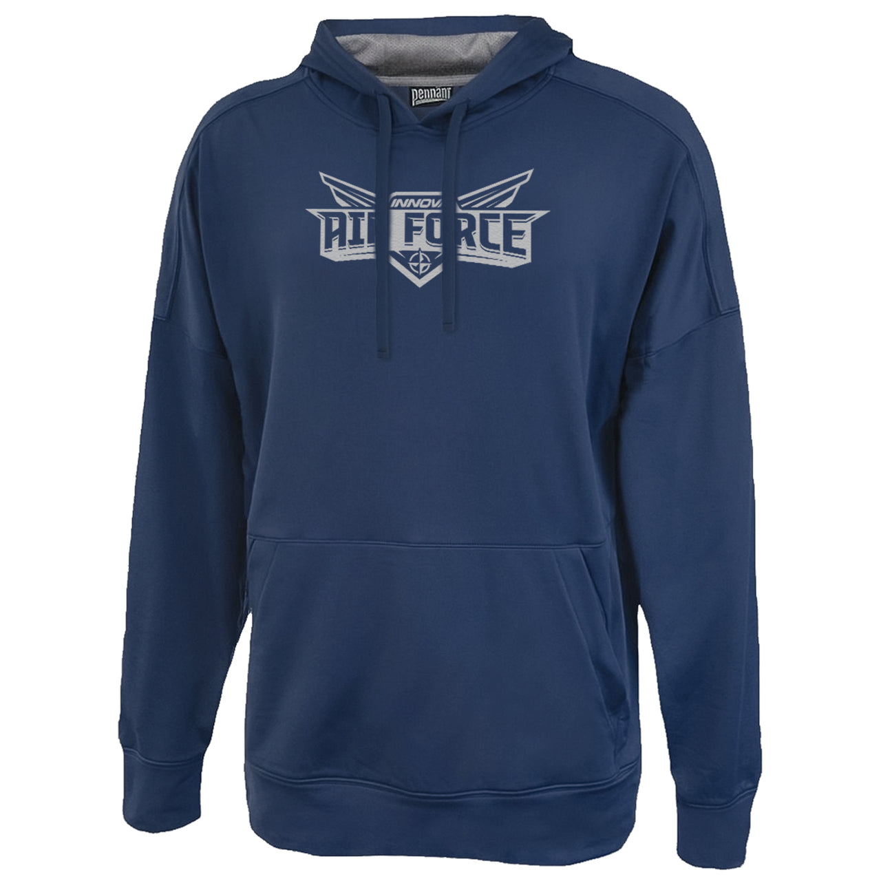 Stay warm, join the movement, and proudly represent the sport. These hoodies are made from 100% recycled materials. Each piece features the Air Force logo on the front and an Innova logo on the back. These hooded sweatshirts are made of a 50/50 cotton pol