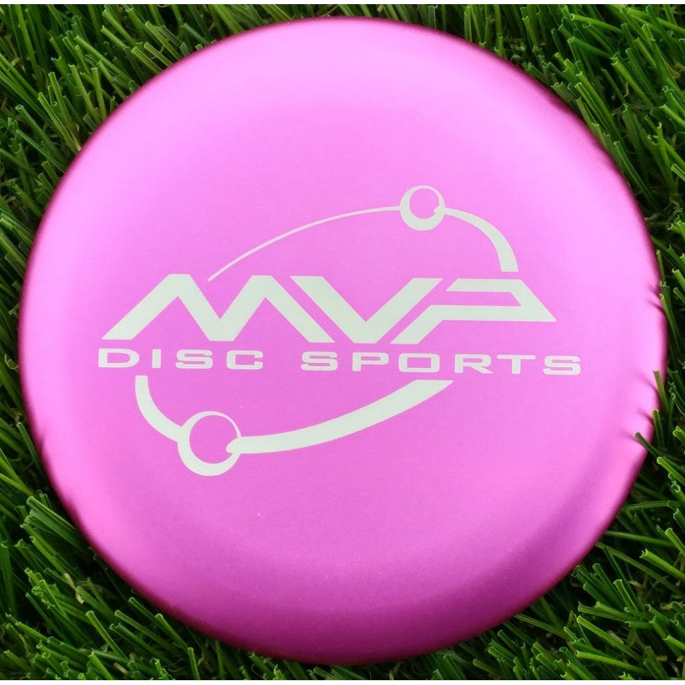 Round MVP Metal Marker disc golf driver in vibrant pink with a central gray Orbit logo.